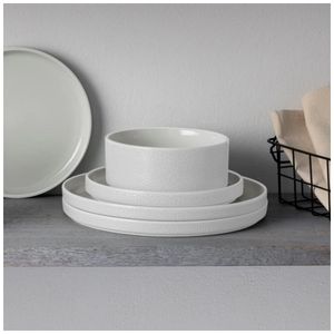 Atenção: Todos os produtos elétricos são 110V e necessitam de adaptador para a tomada no formato Brasileiro. O conjunto Noritake ColorTex Stone de 16 peças inclui 4 de cada um dos seguintes itens: pratos de jantar de 24,8 cm, pratos de salada/sobremesa de 19 cm, tigelas para sopa/cereal e canecas. Este conjunto serve 4 pessoas e é feito de porcelana de alta qualidade e durável, ideal para uso diário e para receber convidados.