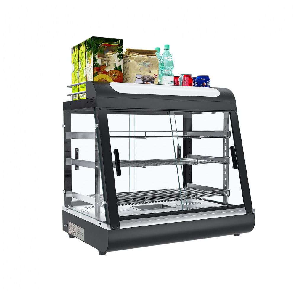 Atenção: Todos os produtos elétricos são 110V e necessitam de adaptador para a tomada no formato Brasileiro. O Aquecedor de Alimentos Countertop Whalefall é um gabinete térmico comercial compacto de 69 cm de comprimento com estrutura em aço inoxidável e vidro temperado em todas as faces, projetado para exibição multi-nível. Inclui 3 bandejas ajustáveis e suporte superior com capacidade para 10-20 garrafas de leite ou suco (até 30 kg), maximizando armazenamento em espaços reduzidos. O termostato ajustável opera na faixa de 21°C a 85°C com exibição em tempo real via knob e termômetro integrado para monitoramento preciso. Equipado com iluminação LED tri-cor (quente, branca e fria) nas laterais e superior, os componentes isolados dissipam calor internamente enquanto iluminam conteúdos como pretzels, sanduíches, brownies, massas folhadas e tortas. Portas deslizantes frontais e traseiras em vidro temperado facilitam autoatendimento em cafeterias, restaurantes e cozinhas. Potência de 1200W suporta operação contínua em ambientes de médio fluxo. Indicado para fast food como hambúrgueres, batatas fritas e pizzas, o design com prateleiras configuráveis otimiza eficiência em pontos de venda compactos. Ficha Técnica Especificação Detalhes Marca Whalefall Cor Preto Material Aço inoxidável, vidro temperado Potência 1200W Voltagem 110V Fonte de energia AC/DC Dimensões (C x L x A) 68,6 x 48 x 70,1 cm Peso do item 35,8 kg Capacidade suporte superior 30 kg Número de bandejas 3 Faixa de temperatura 21°C a 85°C Iluminação LED tri-cor (quente, branca, fria) Portas Deslizantes frontal e traseira Recursos Termômetro e termostato ajustável