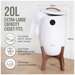 O aquecedor Fontaines aquece rapidamente suas toalhas a uma temperatura confortável e aconchegante. O temporizador integrado permite manter as toalhas aquecidas por 15, 30, 45 ou 60 minutos, desligando automaticamente para segurança. Por padrão, o temporizador é definido para 30 minutos na inicialização, eliminando a necessidade de ajustes adicionais. Basta adicionar uma toalha, girar a tampa e pressionar o botão de ligar/desligar para um uso simples e conveniente.