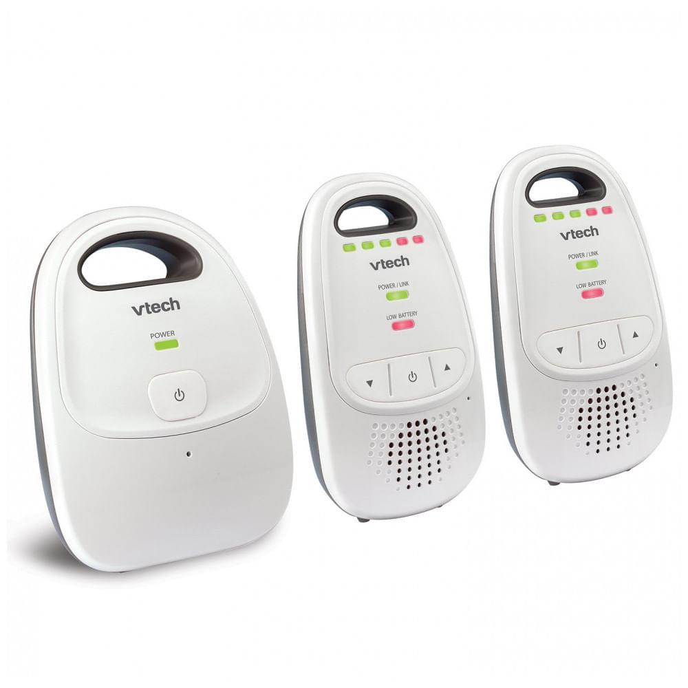 Atenção: Todos os produtos elétricos são 110V e necessitam de adaptador para a tomada no formato Brasileiro. A Babá Eletrônica VTech DM112-2 é um monitor de áudio com alcance de até 300 metros, composta por 1 unidade de bebê e 2 unidades parentais portáteis. Utiliza tecnologia FHSS para conexão estável sem fio, com indicador visual de 5 níveis de som e alertas sonoros para bateria fraca ou perda de sinal. As unidades parentais possuem bateria recarregável com autonomia de 8 horas e clipe para cinto, permitindo monitoramento em movimento dentro do alcance. O volume é ajustável por botões e funciona em modo plug-and-play, conectando automaticamente em 1 minuto após ligar na tomada. Indicada para quartos infantis, possui som cristalino e indicador visual LED quando silenciado. Compatível com acessórios VTech, sem resistência à água, ideal para uso interno em residências. Ficha Técnica: Marca: VTech Fabricante: VTech Modelo: DM112-2 Cor: Branco Materiais principais: plástico Medidas: 25,4 cm x 22,6 cm x 8,6 cm (prof. x larg. x alt.) Peso do produto: 1 kg Capacidade da bateria: 8 horas de uso portátil Voltagem: 110 volts Faixa etária recomendada: recém-nascidos a crianças pequenas Fonte de alimentação: bateria recarregável interna (2 baterias específicas); carregador de tomada Conteúdo da caixa: 1 unidade bebê, 2 unidades parentais, clipes para cinto, cabos de alimentação Manual do usuário: inglês