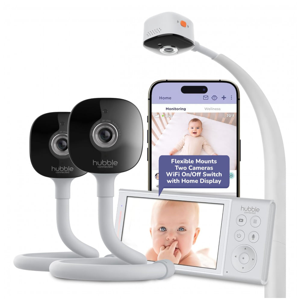 Atenção: Todos os produtos elétricos são 110V e necessitam de adaptador para a tomada no formato Brasileiro. A Babá Eletrônica Hubble GoBaby AI Pro Twin é um sistema de monitoramento com duas câmeras sem fio 2K HD e tela dedicada de 5 polegadas (12,7 cm), para visualização simultânea de múltiplos ambientes ou crianças. Oferece detecção por inteligência artificial de rosto coberto, rolamento, choro verdadeiro (diferenciando ruído ambiente) e análises avançadas de sono. As câmeras incluem suporte flexível para montagem versátil em paredes ou superfícies, com alertas de som, movimento e temperatura. Suporta gravação ativada por movimento, histórico de vídeo e compartilhamento familiar via aplicativo HubbleClub, além de visualização local sem WiFi na tela dedicada. Possui treinador de sono com luzes noturnas, sons calmantes, histórias de áudio e programa Wake & Rise. Funciona com armazenamento criptografado em nuvem (servidores nos EUA) e WiFi com encriptação AES 256-bit, compatível com smartphones. Ficha Técnica: Marca: Hubble Connected Fabricante: Hubble Connected Modelo: GoBaby AI Pro Twin Cor: luar (moonlight) Materiais principais: plástico Medidas da tela: 12,7 cm (5 polegadas) diagonal Peso do produto: 1 kg Peso do pacote: 1,81 kg Voltagem: 110 volts Faixa etária recomendada: recém-nascidos a crianças pequenas Fonte de alimentação: cabos elétricos (incluídos); bateria não substituível (tela) Conteúdo da caixa: 2 câmeras 2K HD sem fio, tela HD 5", suporte flexível, cabos de energia, guia rápido Manual do usuário: inglês