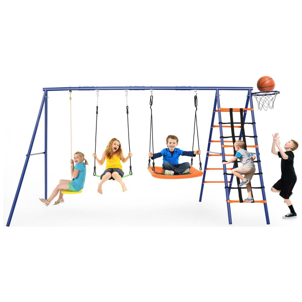 Atenção: Todos os produtos elétricos são 110V e necessitam de adaptador para a tomada no formato Brasileiro. Conjunto de balanço para área externa com estrutura em aço liga reforçada, acabamento em pintura eletrostática para maior resistência à corrosão. Este modelo 6 em 1 oferece três balanços ajustáveis em altura: balanço plataforma com alça de segurança, balanço de cinto em EVA resistente à água e balanço tipo "tree swing". Completa a estrutura um escada de escalada reforçada, rede de escalada em fibra composta e cesta de basquete para atividades extras. A estrutura com design em treliça formato A-frame possui dupla reforço nos pontos de maior tensão, evitando deformações mesmo com uso intenso. Medidas gerais aproximadas de 320 cm (profundidade) x 190 cm (largura) x 185 cm (altura), garantindo espaço adequado entre os balanços para segurança das crianças. Capacidade máxima suportada até 250 kg (550 libras), compatível com até três usuários simultâneos. Inclui seis estacas para fixação no solo otimizando a estabilidade. Produto recomendado para montagem em jardins, quintais, áreas ao ar livre como parques e varandas. Exige montagem. Ficha técnica: Marca/Fabricante: SIHANM Material do quadro: Aço liga Acabamento: Pintura eletrostática (powder coated) Cor: Multicolorido Dimensões (C x L x A): 320 cm x 190,5 cm x 185 cm Peso do produto: 34 kg (74 lbs) Número máximo de assentos: 3 Capacidade máxima de peso: 250 kg (550 lbs) Componentes: 3 balanços ajustáveis (plataforma, cinto EVA, balanço de árvore), escada reforçada, rede de escalada de fibra composta, cesta de basquete Fixação: Inclui 6 estacas para fixação Uso: Externo, para playgrounds residenciais Montagem: Requer montagem detalhada, acompanha manual