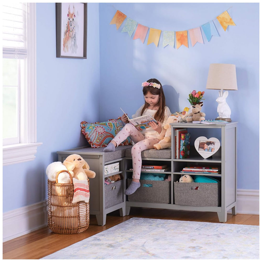 Atenção: Todos os produtos elétricos são 110V e necessitam de adaptador para a tomada no formato Brasileiro. Banco estante de canto infantil com assento acolchoado e múltiplos nichos, projetado para criar um cantinho de leitura em quartos infantis e brinquedotecas. A peça foi dimensionada para aproveitar cantos de parede, combinando área de assento para até duas crianças com espaço de armazenamento para livros, brinquedos, jogos e materiais de aprendizagem em um único móvel.? A estrutura é construída em combinação de madeira de bétula e madeira engenheirada, com acabamento em tom cinza e cantos arredondados, oferecendo resistência ao uso diário e superfície de fácil limpeza com pano seco. As laterais e a base integram nichos abertos e cubos compatíveis com as três caixas de tecido inclusas, que ajudam a organizar itens menores e manter o ambiente visualmente mais limpo.? O assento superior recebe uma almofada espessa em toda a extensão, criando uma área confortável para leitura, descanso ou atividades tranquilas como desenhar e escrever. O desenho em ângulo de canto permite encostar o móvel em duas paredes, formando um abrigo visual que favorece a concentração e o uso individual ou compartilhado por crianças a partir de 5 anos.? O banco estante mede aproximadamente 122,2cm de comprimento, 83,8cm de largura e 75,9cm de altura, com altura de assento em torno de 54,6cm e capacidade de carga indicada de até 90,7kg, adequada para duas crianças sentadas. O conjunto possui peso aproximado de 46,4kg, proporcionando boa estabilidade em piso plano e facilitando o uso em quartos, áreas de estudo ou espaços de leitura integrados à sala.? A montagem é necessária e deve ser realizada por um adulto, com uso de ferramentas, ferragens e manual ilustrado incluídos na embalagem. Uma vez instalado, o móvel funciona como solução integrada de leitura e armazenamento, podendo ser combinado com outros itens da linha Martha Stewart Living and Learning para compor ambientes que conectam casa e espaços de aprendizagem.? A Guidecraft, fabricante desta linha licenciada Martha Stewart, é uma empresa com décadas de atuação no desenvolvimento de móveis infantis e brinquedos educativos voltados para escolas, lares e ambientes de aprendizagem. A marca se posiciona com foco em estruturas robustas em madeira, propostas que incentivam a autonomia e a exploração criativa das crianças e soluções que integram mobiliário funcional ao cotidiano de espaços pedagógicos e domésticos.? Ficha Técnica: Marca: Martha Stewart Fabricante: Guidecraft Modelo: Martha Stewart Kids' Corner Nook B08P7QNL46 Tipo de produto: Banco estante de canto infantil com assento acolchoado e nichos Cor: Cinza (Sharky Gray) Material da estrutura: Madeira de bétula e madeira engenheirada Acabamento: Superfície em tom bétula/cinza, de fácil limpeza Tipo de assento: Banco com almofada acolchoada integrada Capacidade de assentos: Até 2 crianças Dimensões totais (P x L x A): 122,2cm x 83,8cm x 75,9cm Altura do assento: 54,6cm Peso do produto: 46,4kg Capacidade de peso: 90,7kg Número de nichos/cubos: Múltiplos nichos abertos e cubos para organização (parte inferior e lateral) Caixas de tecido: 3 caixas de tecido inclusas Ambientes indicados: Quarto infantil, brinquedoteca, área de leitura, sala de estudos Faixa etária sugerida: A partir de 5 anos Cuidados de limpeza: Limpar com pano seco Necessita montagem: Sim (ferragens, ferramentas e instruções incluídas) Conteúdo da embalagem: Estrutura do banco estante em peças, almofada de assento, 3 caixas de tecido, ferragens, ferramentas e manual de montagem Manual do usuário: Inglês