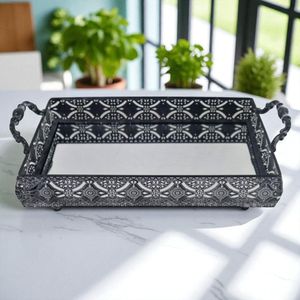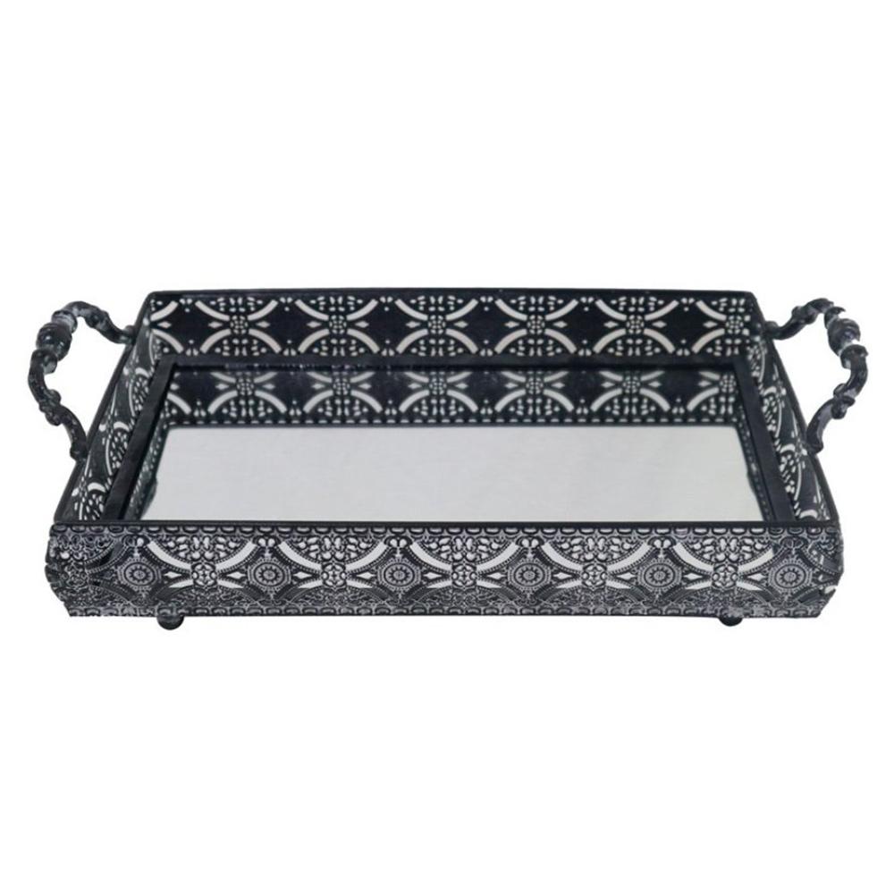 A bandeja retangular L'Hermitage Bakir é uma peça charmosa e funcional, perfeita para adicionar um toque de elegância a qualquer espaço. Com estrutura em ferro na cor preta e um fundo espelhado, ela oferece um visual moderno e sofisticado. As alças laterais garantem facilidade no manuseio, seja para servir aperitivos ou para organizar itens decorativos. Suas dimensões de 35cm de comprimento, 19cm de largura e 10cm de altura a tornam ideal para bancadas, mesas de centro ou aparadores, ajudando a manter tudo organizado com muito estilo. Uma excelente escolha para quem aprecia design e praticidade.
