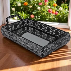 Esta elegante bandeja retangular da L'Hermitage, linha Bakir, combina funcionalidade e design para complementar sua decoração. Fabricada em ferro resistente na cor preta, ela possui um espelho no fundo que adiciona profundidade e sofisticação. As alças facilitam o transporte, tornando-a ideal para servir ou organizar seus objetos favoritos, como perfumes, joias ou copos. Com 39cm de comprimento, 23cm de largura e 10cm de altura, é uma peça versátil que se adapta a diversos ambientes, desde a sala de estar até o banheiro. O acabamento refinado e o estilo contemporâneo fazem desta bandeja um item indispensável para quem busca beleza e praticidade.