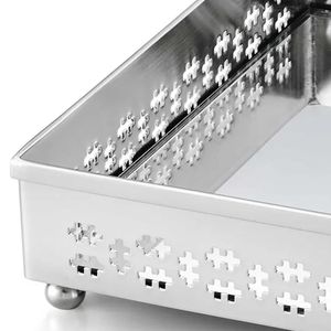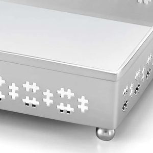 A Bandeja Retangular Mirror Cross Pequena Prata é uma peça fundamental para a decoração da sua casa, ideal para a montagem de um bar em casa ou para ser usada como peça central na sala. Seu design é imponente e sofisticado.