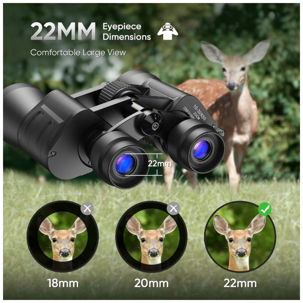 Atenção: Todos os produtos elétricos são 110V e necessitam de adaptador para a tomada no formato Brasileiro. Binóculos 10-30x50 com visão noturna para pouca luz, prisma BAK7, lentes FMC, zoom de alta definição, à prova d’água e ideais para esportes e observação. SOBRE ESTE ITEM TAMANHO IDEAL DA LENTE OCULAR: Com um diâmetro de ocular de 22 mm, nossos binóculos com zoom oferecem um campo de visão amplo. Essa lente maior capta mais luz para uma experiência mais clara e brilhante. Além disso, binóculos 10-30X50 com capa protetora de silicone e material temperado resistente, são mais fáceis de proteger em comparação com binóculos com oculares maiores, garantindo um desempenho duradouro. OBJETIVA FMC DE 50 MM, PRISMA BAK7, VISÃO NOTURNA: Nossos binóculos de visão noturna para pouca luz com prisma BAK7, lente objetiva de 55 MM e lente de vidro com revestimento multicamadas FMC. A lente possui brilho e efeito fantasma bem controlados. É fácil ver objetos na sombra, mesmo em contraluz ou fundo claro, proporcionando cores mais vivas sem bordas escuras. Este binóculo de alta potência pode ser usado à noite, mas não na escuridão total. ÓPTICA DE QUALIDADE: Este binóculo de foco fácil para adultos oferece ampliação de zoom de 10 a 30X. Tripé com interface antivibração para visualização estável. Desfrute de alta definição e visão ampla de 235 pés/1000 jardas. O revestimento óptico corretivo garante fidelidade de cores e distorção mínima. Nosso binóculo militar, também com sistema de dioptria, pode ajustar qualquer desequilíbrio em sua visão. O botão de foco central de grande porte simplifica a operação e garante fácil foco. ANTIDERRAPANTE, À PROVA D'ÁGUA, À PROVA DE POEIRA E ANTIEMBAÇANTE: Este binóculo para observação de pássaros é ergonômico, possui uma estrutura metálica resistente e pesa apenas 1kg, garantindo estabilidade durante o uso a longo prazo. A textura antiderrapante combinada com a armadura de borracha inodora oferece proteção e uma pegada confortável. Com lentes seladas por O-ring e revestimento antiembaçante, estes binóculos de caça previnem a entrada de umidade, poeira e detritos. À prova d'água, mas não é recomendado o uso em chuva forte prolongada ou submersão. AMPLA VARIEDADE DE USOS: Binóculos para cruzeiros, caça, observação de pássaros, observação de animais, vela, viagens, jogos esportivos, concertos, ópera, observação de estrelas, passeios turísticos e observação astronômica. Também perfeito para atividades ao ar livre, como escalada, caminhadas, viagens, acampamentos, observação da vida selvagem e paisagens. EMBALAGEM: Bolsa preta tipo carteiro *1, Capa protetora para lente *4, Alça para cinto binocular *1, Instruções para binóculo *1, Pano para limpeza de lente *1, Binóculos com zoom *1. Especificaçoes: Peso:1 kg Cor:Preto