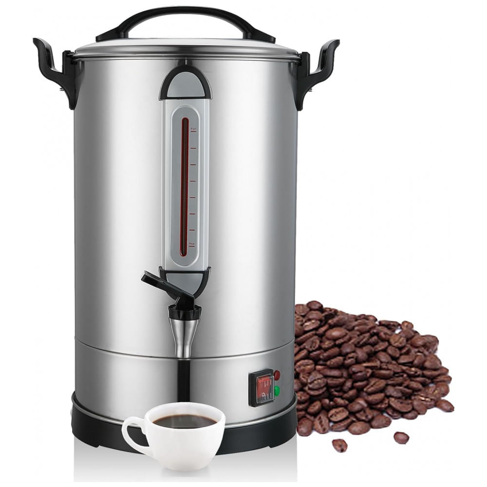 Atenção: Todos os produtos elétricos são 110V e necessitam de adaptador para a tomada no formato Brasileiro. Este bule elétrico para café de alta capacidade, da marca CAZACHEF, é projetado para preparação eficiente em grandes eventos ou ambientes comerciais, suportando até 100 xícaras por ciclo. Sua construção em aço inoxidável com parede dupla promove excelente retenção térmica e durabilidade, aliado a um sistema de aquecimento de 1300W que permite a preparação rápida do café em aproximadamente 60 minutos. O filtro removível em aço inoxidável possui perfurações finas que garantem a filtragem precisa dos grãos, evitando resíduos na bebida. A torneira fabricada em aço inoxidável assegura resistência ao desgaste e facilita a higienização, superando modelos com componentes em plástico. O equipamento mantém a temperatura ideal do café após a preparação por meio de seu sistema de aquecimento ativo com desligamento automático. Ideal para uso em conferências, buffets, eventos de catering e ambientes que demandam preparo contínuo e confiável de café e água quente. Ficha técnica Marca: CAZACHEF Modelo: Commercial Coffee Maker (CAZA-16C2-C) Capacidade: 100 xícaras (aproximadamente 23,7 litros) Potência: 1300 watts Voltagem: 110V Material: Aço inoxidável, acabamento polido Dimensões: 35,6 cm (diâmetro) x 51 cm (altura) Tipo de filtro: Reutilizável em aço inoxidável, removível e lavável em lava-louças Tipo de produto: Bule elétrico percolador para café Operação: Totalmente automática com botão de controle Características adicionais: torneira em aço inoxidável, sistema de aquecimento rápido, parede dupla para isolamento térmico, desligamento automático, fácil limpeza Aplicações recomendadas: preparo de café, preparo de chá, aquecimento de água em eventos e estabelecimentos comerciais Componentes inclusos: tampa e filtro de aço inoxidável Cor:Prata Peso:4,87 kg