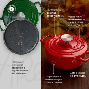Prepare suas receitas com um toque caseiro e acolhedor na Caçarola de Ferro Fundido Esmaltado da linha Aroma. Desenvolvida para uma melhor cocção, ela distribui o calor de forma uniforme, preservando os nutrientes e o sabor dos alimentos. Seu design exclusivo e a vibrante cor vermelha combinam com qualquer cozinha.