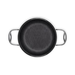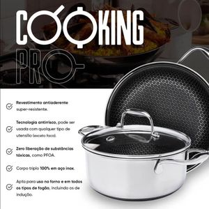 Prepare refeições incríveis com a Caçarola CookingPro Hive, um utensílio de alta performance que une tecnologia e design para sua cozinha. Sua estrutura tripla garante um aquecimento rápido e uniforme, enquanto a inovadora tecnologia de micromalha em formato de colmeia 100% em aço inox protege o revestimento antiaderente, tornando-a antirrisco. Essa combinação permite o uso de menos óleo e garante maior controle de temperatura, facilitando o preparo e a limpeza.