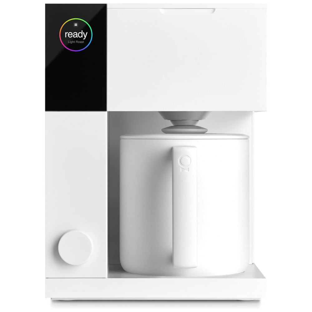 Atenção: Todos os produtos elétricos são 110V e necessitam de adaptador para a tomada no formato Brasileiro. A Cafeteira Fellow Aiden é uma máquina de café por gotejamento que oferece qualidade de extração comparável ao método pour-over, com controle preciso de temperatura mantido por sistema PID que garante variação inferior a ±0,5°C na água durante o preparo. Equipada com um ciclo bloom programado que saturação otimiza a extração, a Aiden possui cestos de filtro intercambiáveis para preparo de uma a até 10 xícaras sem perda de qualidade. O sistema de braço duplo distribui a água uniformemente para todas as quantidades. O recipiente térmico mantém o café quente por até duas horas, garantindo conservação térmica eficiente. A máquina possui função de agendamento via aplicativo mobile, com sincronização de perfis de preparo e notificações, integrando controle manual e automático para personalização ampla. A tampa de silicone vedante protege armários contra vapor, e o enrolador de cabo mantém organização. Construída com plástico BPA-free, aço inoxidável e silicone de grau alimentício, pesa 3,16 kg e tem capacidade de reservatório de 1,5 litros. Ficha técnica Marca: Fellow Modelo: EBRMW-NA Capacidade: 1,5 L (aproximadamente 10 xícaras) Voltagem: 120 V Potência: 1700 W Material: Plástico BPA-Free, aço inoxidável, silicone alimento Cor: Branco fosco Dimensões (L x P x A): 23 cm x 23 cm x 30,8 cm Peso: 3,16 kg Controle: PID de temperatura com variação ±0,5°C, ciclo bloom programado Funções: Agendamento por aplicativo, cestos intercambiáveis para doses únicas e múltiplas, braço duplo para distribuição uniforme de água, recipiente térmico para manter quente até 2 horas Outros: Enrolador de cabo, tampa de silicone vedante