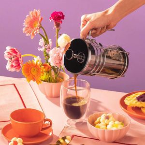 Sirva a família ou os amigos com um café de sabor inigualável! A Cafeteira Francesa dispensa o uso de filtros de papel, utilizando apenas o êmbolo da prensa para separar o pó da água.
