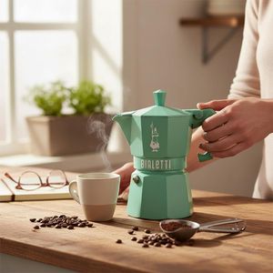 A Bialetti Moka Express Exclusive Verde é uma homenagem ao design clássico italiano, unindo a estética vintage da década de 1960 a uma cor sofisticada e contemporânea. Esta edição especial destaca-se pelo seu acabamento de brilho intenso em um tom de verde refinado, transformando a cafeteira em um verdadeiro objeto de desejo para quem valoriza a união entre tradição e estilo na mesa posta.