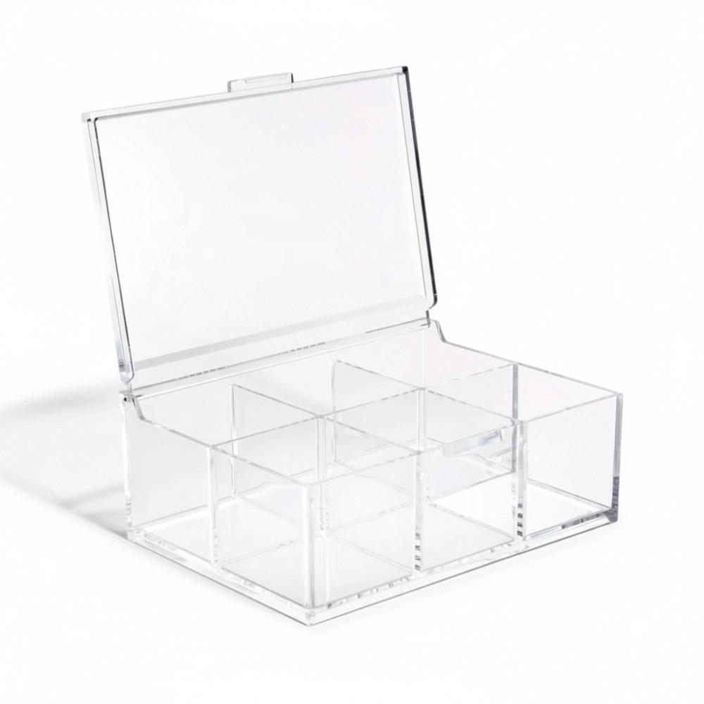 Sua transparência facilita a visualização do conteúdo sem precisar abrir! Tem uma aparência sofisticada, semelhante ao vidro e pode ser usada para armazenar itens diversos, como: maquiagem, acessórios, materiais de escritório e até mantimentos.