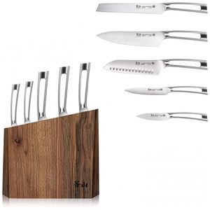 Cangshan 1024838 Conjunto de Facas em Aco Forjado com Bloco de Bancada 6 Pecas Prata