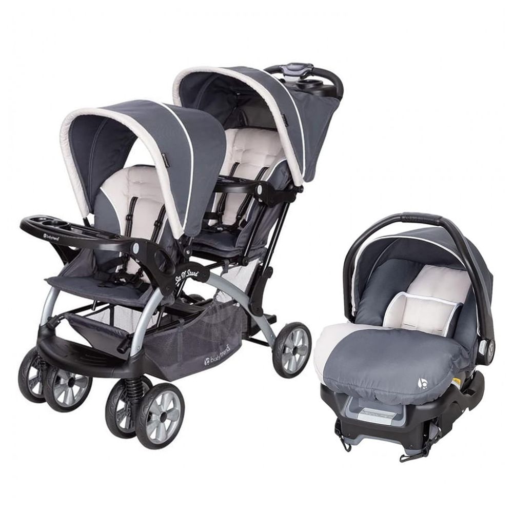 Atenção: Todos os produtos elétricos são 110V e necessitam de adaptador para a tomada no formato Brasileiro. ROTOR DUPLO O carrinho duplo em tandem com várias posições de pilotagem permite que toda a família desfrute de um belo passeio juntos. Os bancos dianteiro e traseiro do carrinho duplo aceitam até 2 assentos de carro infantis. Compatível com o assento de carro infantil Baby Trend incluído.