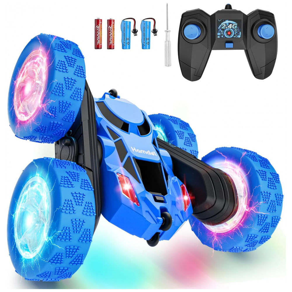 Atenção: Todos os produtos elétricos são 110V e necessitam de adaptador para a tomada no formato Brasileiro. Carrinho de controle remoto Hamdol Blue Racer, projetado para crianças a partir de 6 anos, com estrutura em ABS, formato aerodinâmico e rodas preparadas para manobras e acrobacias em dupla face. O modelo permite dirigir em ambos os lados, realizar giros de 360°, rotações e capotagens controladas, favorecendo o desenvolvimento de coordenação motora e percepção espacial.? As rodas contam com iluminação em LED colorida, que destaca o carrinho em ambientes internos e externos, inclusive em condições de menor luminosidade. O sistema de rádio 2,4GHz reduz interferências, permitindo que vários carrinhos sejam usados ao mesmo tempo, com controle responsivo de direção e acrobacias.? O carrinho é equipado com bateria recarregável para o veículo e utiliza pilhas AA no controle, oferecendo ciclos de uso prolongados com recarga simples. Os pneus em material de alta aderência permitem uso em diferentes superfícies, como piso frio, carpetes, grama baixa e áreas externas planas.?? Ficha Técnica: Marca: Hamdol? Fabricante: Hamdol? Modelo: Blue Racer / GLOW RC Stunt Car? Tipo de produto: Carrinho de controle remoto 4WD com acrobacias 360°? Material principal: Plástico ABS e componentes metálicos? Cor: Azul com detalhes em preto e rodas com iluminação LED? Idade recomendada: A partir de 6 anos? Sistema de controle: Rádio 2,4GHz com controle de direção, giros e acrobacias? Funções de movimento: Condução em dupla face, giros de 360°, flips, rotações e avanço/recuo? Recursos de iluminação: Rodas com LEDs coloridos integrados? Alimentação do carrinho: Bateria recarregável (inclusa)? Alimentação do controle: Pilhas AA? Dimensões do produto (C x L x A): 18 cm x 7,5 cm x 25 cm (conversão de 7 x 3 x 10)? Peso do produto: 0,55kg Superfícies indicadas: Piso interno, carpetes, grama baixa e áreas externas planas?? Conteúdo da embalagem: Carrinho de acrobacias, controle remoto, bateria recarregável, pilhas para o controle, cabo de carregamento e manual? Manual do usuário: Inglês?