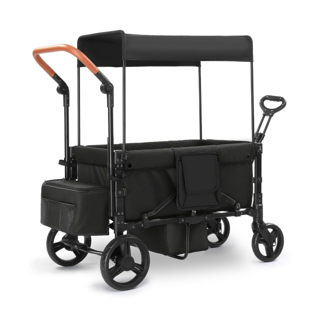 Atenção: Todos os produtos elétricos são 110V e necessitam de adaptador para a tomada no formato Brasileiro. Carrinho de passeio dupla SAFETY CAREYA preto funciona em 3 modos: empurrar, puxar ou dobrável, com poço retrátil para pés e capacidade total de 90,7 kg para uso outdoor em acampamentos, parques ou passeios. Estrutura leve em alumínio de 12,7 kg com alças telescópicas ajustáveis facilita manobras em diferentes alturas, rodas todo terreno com absorção de choque para variados solos. Cobertura ajustável em posições múltiplas adapta-se à luz solar. Inclui organizador com bolsos para lanches, fraldas e garrafas. Assentos com acolchoamento espesso e cinto de 5 pontos com proteção contra liberação acidental. Freio de um passo para parada segura; dobra em três etapas para armazenamento compacto (57 x 42 x 89 cm). Certificado ASTM para segurança; montagem requerida com instruções simples. Compatível com bebês e crianças. Dimensões desdobrado 112 x 57 x 84 cm suportam uso versátil em exteriores. Ficha Técnica • Dimensões do produto (desdobrado): 112 x 57 x 84 cm (C x L x A)? • Dimensões dobrado: 57 x 42 x 89 cm (C x L x A)? • Peso do produto: 12,7 kg? • Capacidade máxima de peso: 90,7 kg (total); até 15 kg por assento? • Peso da embalagem: 13 kg • Potência: Não aplicável (manual)? • Capacidade: 2 crianças ou equivalente em carga até 90,7 kg? • Materiais: Estrutura e alças telescópicas em alumínio; rodas todo terreno? • Faixa etária: Bebês e crianças? • Conteúdo da caixa: Carrinho completo, cobertura, barra de puxar, barra de empurrar, estrutura? • Manual do usuário: Inglês (idioma principal)