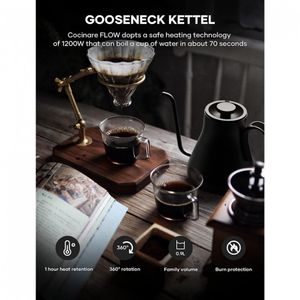 AQUECIMENTO RÁPIDO O Cocinare FLOW dopts uma tecnologia de aquecimento de 1200W que pode ferver um copo de água em cerca de 70 segundos