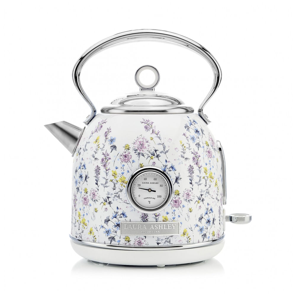 Atenção: Todos os produtos elétricos são 110V e necessitam de adaptador para a tomada no formato Brasileiro. A chaleira elétrica dome Laura Ashley Wild Meadow com corpo em aço inoxidável e capacidade de 1,7 litro foi desenvolvida para aquecer água de forma rápida em uso doméstico. O formato em cúpula, combinado à base giratória, facilita o manuseio sobre a bancada e a reposição da chaleira na base de alimentação. A potência elevada permite ebulição acelerada, adequada ao preparo frequente de chás, cafés e outras bebidas quentes. O equipamento possui indicador externo de nível de água com marcações de volume, auxiliando a ferver apenas a quantidade necessária. Um termômetro analógico integrado ao corpo permite monitorar a temperatura da água, recurso útil para chás e bebidas que exigem aquecimento abaixo do ponto de ebulição. A tampa superior é removível e conta com superfície de toque frio, contribuindo para reabastecimento mais seguro durante o uso. A resistência é do tipo oculta, o que favorece a limpeza interna e reduz o acúmulo direto de resíduos sobre o elemento de aquecimento. Os sistemas de segurança incluem proteção contra fervura a seco, que interrompe o aquecimento na ausência de água suficiente, além de desligamento automático ao atingir a ebulição. A construção em aço inoxidável 304 com acabamento pintado e estampa Wild Meadow foi projetada para durabilidade superficial e integração com linhas decorativas de cozinha. Ficha Técnica: Marca: Laura Ashley Fabricante: New Dawn Innovations Limited Modelo: VQSBPKK336LAWM Tipo de produto: Chaleira elétrica dome em inox Cor: Branco com estampa floral Wild Meadow Material do corpo: Aço inoxidável 304 com acabamento pintado Material interno em contato com a água: Aço inoxidável livre de BPA Material da base: Plástico com base giratória 360° Aplicação: Aquecimento e fervura de água para bebidas e preparo de alimentos Capacidade: 1,7L Potência: 1500W (classe de fervedor rápido) Recursos de aquecimento: Ebulição rápida, termômetro externo para monitorar temperatura Recursos de segurança: Desligamento automático, proteção contra fervura a seco, tampa de toque frio, resistência oculta Indicador de nível: Visor externo de nível de água com marcações de volume Dimensões do produto (C x L x A): 19,3 cm x 19,3 cm x 24,9 cm Fonte de alimentação: Energia elétrica Voltagem: 110V Peso do produto: 2,09 kg Peso do pacote (produto + embalagem): 2,40 kg Itens inclusos: 1 chaleira elétrica dome, 1 base de alimentação, 1 manual do usuário Uso recomendado: Ambiente doméstico Manual do usuário: Idioma inglês Ano de fabricação indicado: 2025