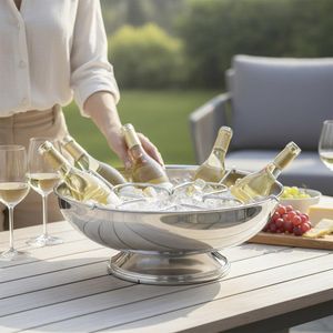 Seu formato baixo e amplo garante que a champanheira seja um centro de mesa elegante e funcional.