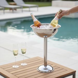 Esta champanheira transforma o ambiente de suas festas, proporcionando uma experiência de luxo e conveniência para seus convidados. Ideal para presentear em ocasiões especiais ou para equipar o bar da casa com um item profissional, ela combina a resistência do aço inox com um visual contemporâneo que valoriza o momento do brinde e a organização do serviço.