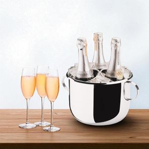 Com uma capacidade de 6 litros, a champanheira é dimensionada para acomodar uma ou duas garrafas com gelo, sendo perfeita para mesas compactas e momentos especiais. Seu corpo em inox não só confere durabilidade e resistência excepcionais, mas também um acabamento polido e moderno que serve como um belo item de decoração. O inox é um material higiênico e mantém a temperatura das bebidas por mais tempo.