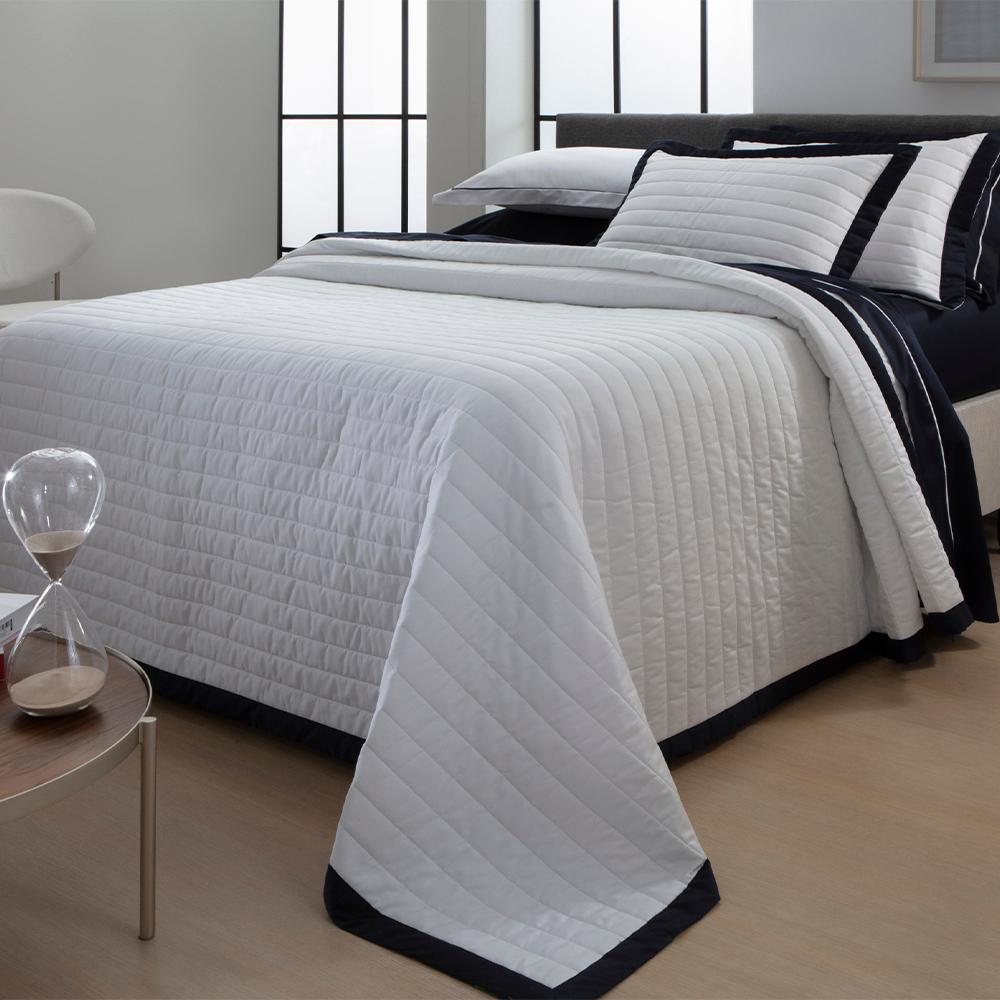 Colcha Stripes Kacyumara Satineé 300 fios Super King 3,20mx2,60m Branco/Marinho