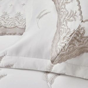 A Colcha Queen La Collina é elegante e delicada, com fundo Branco e bordados em marrom, traz ricos bordados e texturas com desenhos geométricos e de lindas folhas, com minuciosos pontos no seu acabamento. Sua confecção é em Cetim 300 fios 100% Algodão Egípcio. Faça do seu quarto ainda mais elegante com Trussardi