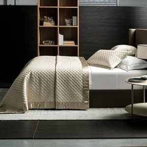 A Colcha tamanho Super King Tommaso é uma excelente escolha para quem aprecia um estilo sofisticado e elegante. O tecido é confeccionado em Cetim 300 fios, seu toque do 100% Algodão é suave e prazeroso. Seu matelassado é trabalhado e junto com o acabamento da barra em 100% seda, torna a colcha Tommaso imponente e desejada. Surpreenda-se com o massimo conforto e viva a essenza Trussardi.