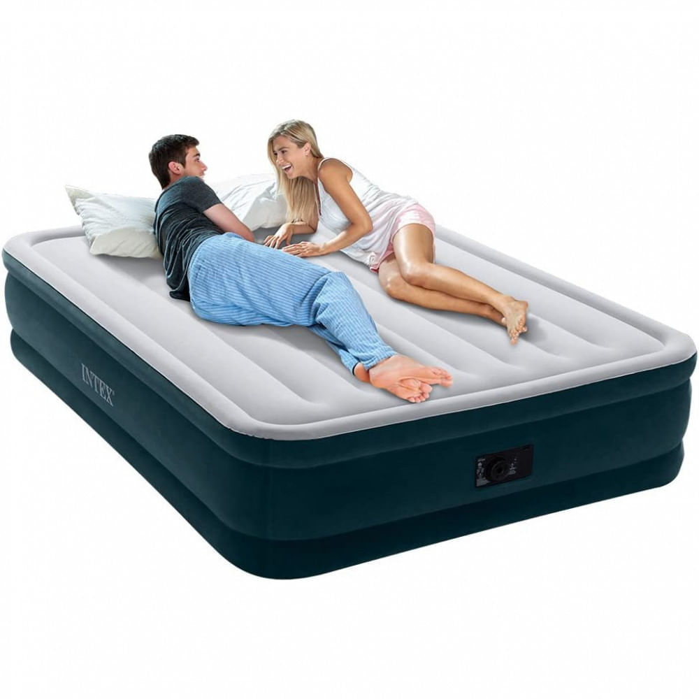 SEM IMPOSTO DE IMPORTACAO E FRETE GRATIS PRAZO DE ENTREGA 20 DIAS UTEIS O preco ja inclui todos os custos nao sera cobrado nenhum valor extra para o recebimento do produto O preco inclui imposto de Importacao ICMS Frete Nacional Frete Internacional Servicos Alfandegarios e a intermediacao do cambio para pagamento no exterior Atencao Todos os produtos eletricos sao 110V e necessitam de adaptador para a tomada no formato Brasileiro Feito com flocagem suave na parte superior e nas laterais da camaBomba eletrica embutida super conveniente 110120vElevada 40cm para facilitar a entrada e saidaConstrucao interna DuraBeam para suporte e durabilidade O novo e exclusivo colchao de ar da Intex oferece tudo o que voce precisa para um hospede noturno ou uma viagem para fora da cidade Com uma luxuosa parte superior e laterais FLOCKED uma bomba eletrica embutida super conveniente e uma construcao de tecnologia de fibra patenteada pela Intex o colchao de ar com conforto elevado e essencial para qualquer familia Voce provavelmente nem precisara comprar novas folhas o tamanho padrao da rainha significa que voce pode usar as folhas ajustadas que voce ja possui Alem disso a altura da cama de 40cm pode facilitar a acordar de manha