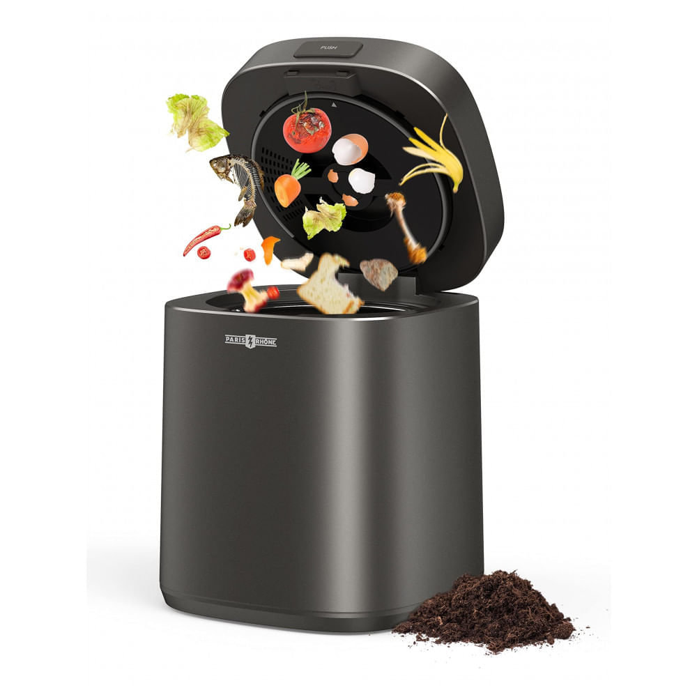 Atenção: Todos os produtos elétricos são 110V e necessitam de adaptador para a tomada no formato Brasileiro. O compostor elétrico Paris Rhône Smart processa resíduos alimentares em pré-fertilizante por desidratação térmica e trituração em 3 modos operacionais, projetado para uso indoor em bancada de cozinha residencial. Inclui filtros de carbono ativado para controle de odores e sistema de ciclagem que reduz volume orgânico em ciclos de 4-8 horas. Compatível com rotinas domésticas sustentáveis, gera material utilizável em jardinagem. Tecnologia de aquecimento PTC mantém temperaturas de 60-80°C com painel de controle digital para seleção de modos (rápido, eco, intensivo). Materiais incluem aço inoxidável interno e plástico ABS exterior, com balde removível para esvaziamento. Opera exclusivamente em 120V/60Hz, padrão norte-americano. Cuidados envolvem limpar balde após cada uso, substituir filtros a cada 3 meses e evitar resíduos oleosos ou não biodegradáveis para otimizar desempenho. Ficha Técnica • Capacidade: 4L (processa 800g-1kg por ciclo).? • Dimensões produto: 24 cm largura x 33 cm profundidade x 28 cm altura.? • Peso produto: 5,8 kg.? • Dimensões embalagem: 28 cm x 36 cm x 32 cm.? • Peso embalagem: 7,2 kg.? • Potência: 280W.? • Modos operação: 3 (desidratação rápida, eco, intensivo).? • Materiais: Aço inoxidável interno, ABS exterior; filtros carbono.? • Fonte alimentação: 120V AC, 60Hz; cabo 1,4 m.? • Faixa etária: Adultos.? • Conteúdo caixa: Unidade principal, filtros carbono (2 unid.), cabo alimentação, manual.? • Manual usuário: Inglês (multilíngue digital disponível).