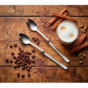 Fabricadas em aço inoxidável, as colheres oferecem resistência ao uso diário e mantêm seu visual por muito mais tempo. O design alongado é ideal para copos altos, permitindo alcançar o fundo com facilidade sem comprometer a ergonomia, além de harmonizar perfeitamente com diferentes estilos de louças e taças.
