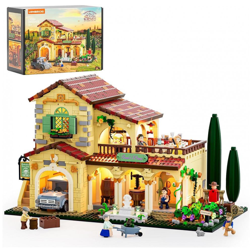 Atenção: Todos os produtos elétricos são 110V e necessitam de adaptador para a tomada no formato Brasileiro. Conjunto de blocos de montar para adultos com 2800 peças que reproduz uma propriedade vinícola em estilo mediterrâneo, com edifício principal tipo chalé, pátio, fonte, área de vinhedo e elementos decorativos de paisagem. A arquitetura inclui detalhes como telhado em múltiplos níveis, varandas, escadarias externas e acabamentos que remetem a uma casa de campo italiana.? O interior é setorizado para ilustrar o ciclo do vinho, com áreas de trabalho no piso térreo para cultivo, prensagem e fermentação, e pavimento superior com cozinha, quarto, estúdio de arte e espaço de banquete. A parede traseira é articulada para abertura ampla, e o piso da adega pode ser removido para visualização completa dos ambientes internos.? O cenário inclui minifiguras envolvidas em tarefas de campo, colheita e celebrações, além de caminhonete clássica para transporte de garrafas e caixas, permitindo composições variadas de exibição. O sistema de iluminação integrado oferece diversos pontos de LED e faixas de luz, com destaque para iluminação suave azul na fonte e luzes âmbar na área do vinhedo que criam efeito de ambientação noturna.? Ficha Técnica: Marca: Lumibricks? Fabricante: LUMIBRICKS? Modelo: Farm Vineyard-Estate L9086-EU? Ano do modelo: 2025? Tema: Fazenda e vinícola? Tipo de bloco de montar: Bloco de construção intertravado? Material: Plástico? Cores predominantes: Vermelho, azul, amarelo, verde, laranja, roxo e branco? Número de peças: 2800? Dimensões do produto (C x L x A): 43,0 cm x 33,0 cm x 17,0 cm Altura do conjunto: 17,0 cm? Peso do produto: 5,0 kg? Peso do pacote (produto + embalagem): 5,0 kg? Tamanho: Grande? Faixa etária recomendada: A partir de 16 anos (192 meses)? Objetivos educacionais: Resolução de problemas, jogo de papéis e raciocínio espacial? Recursos de iluminação: 16 pontos de iluminação LED e 5 faixas de luz integradas? Características adicionais: Sistema de iluminação alimentado por bateria e efeitos de brilho em áreas externas? Elementos de cena: Casa principal, vinhedo, fonte, caminhonete, mobiliário interno e minifiguras temáticas? Conteúdo da caixa: Blocos de montar, manual de instruções, kit de iluminação LED? ASIN: B0FGQ16612? Manual do usuário: Inglês?