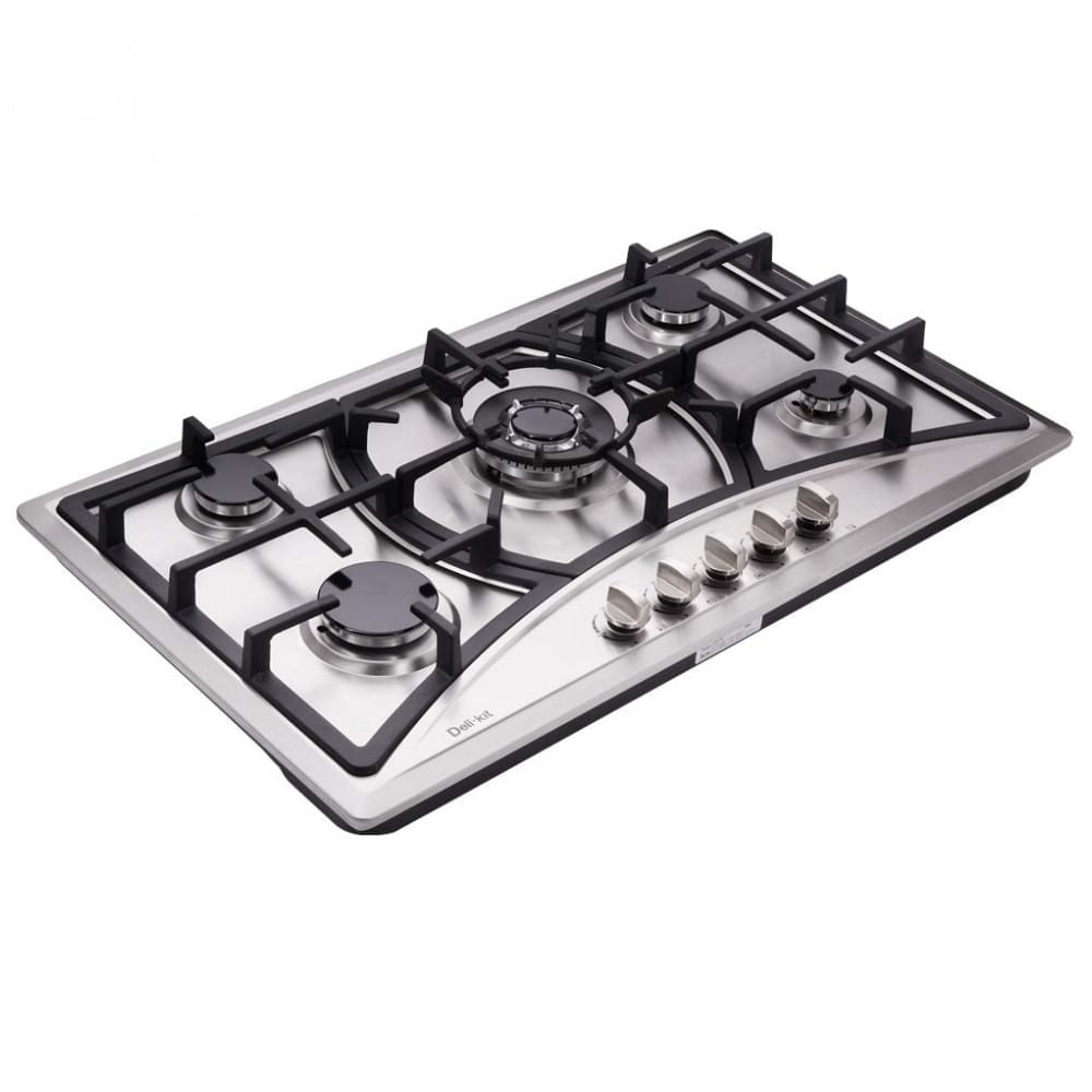 Atenção: Todos os produtos elétricos são 110V e necessitam de adaptador para a tomada no formato Brasileiro. O cooktop a gás de 5 bocas Deli-Kit DK258-A07 é um modelo de embutir com mesa em aço inox escovado, adequado para uso doméstico com alimentação a gás natural ou GLP. A superfície em inox escovado facilita a limpeza e oferece resistência à corrosão, enquanto as grades em ferro fundido proporcionam apoio estável para panelas de diferentes tamanhos. A configuração de queimadores inclui uma boca tripla de maior potência, um queimador semirrápido, dois queimadores médios e um queimador auxiliar, permitindo usos como fervura, cocção em fogo médio, fritura e aquecimento em fogo brando. A distribuição da chama é ajustada por manípulos independentes, oferecendo controle individual de cada zona de cocção. A ignição eletrônica por pulso em 110V é integrada aos comandos, dispensando acendedores manuais e simplificando o acionamento da chama. O produto sai de fábrica configurado para gás natural, com possibilidade de conversão para GLP por meio da troca de bicos, conforme o tipo de gás disponível na instalação. As dimensões do cooktop permitem instalação em recorte de bancada em torno de 83 cm de largura e 47 cm de profundidade, aproveitando o espaço de bancada sem reduzir a área útil de cocção. A estrutura em aço inox combinada às grades em ferro fundido contribui para durabilidade em rotinas de uso frequente em cozinhas residenciais. Ficha Técnica: Marca: Deli-Kit Fabricante: Deli-Kit Modelo: DK258-A07 Tipo de produto: Cooktop a gás de embutir 5 bocas Tipo de instalação: Embutir Alimentação de gás: Gás natural (NG) ou GLP Fonte de alimentação elétrica: 110V Potência elétrica: 2750W Número de queimadores: 5 Tipo de queimador: Gás, selado Potência térmica dos queimadores: 11262 BTU (triplo); 9385 BTU (semirrápido); 2 x 5972 BTU; 3413 BTU (auxiliar) Material da mesa: Aço inox escovado Acabamento da mesa: Inox escovado Material das grades: Ferro fundido Cor: Inox escovado Dimensões do produto (L x P x A): 86,0 cm x 50,0 cm x 10,0 cm Dimensões de recorte de bancada (L x P): 83,0 cm x 47,0 cm Peso do produto: 16,0kg Peso do pacote (produto + embalagem): 18,0kg Combustível: Gás Compatibilidade de gás: Bicos para gás natural e GLP Componentes inclusos: Grades em ferro fundido, suporte para wok Faixa de uso recomendada: Uso doméstico em cozinhas residenciais Manual do usuário: Inglês Conteúdo da embalagem: Cooktop a gás, grades em ferro fundido, suporte para wok, manual do usuário em inglês