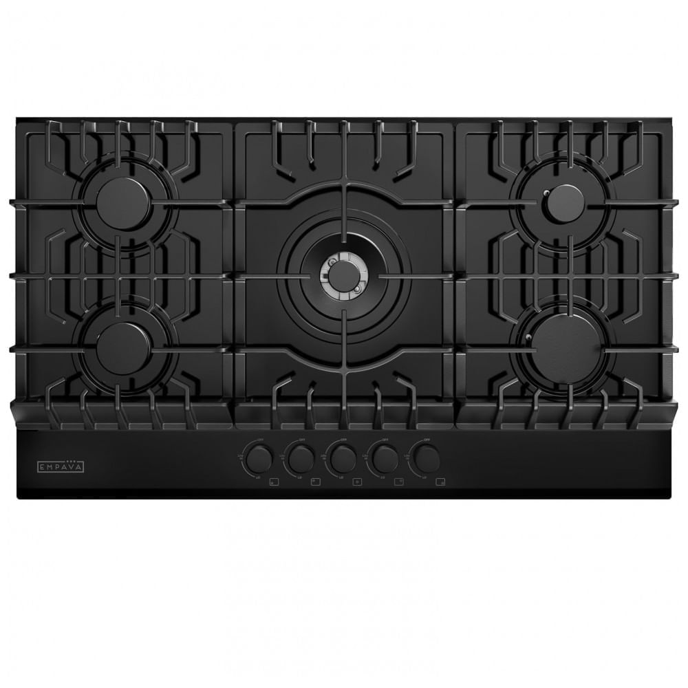 Atenção: Todos os produtos elétricos são 110V e necessitam de adaptador para a tomada no formato Brasileiro. O cooktop a gás 91cm Empava em vidro temperado preto oferece cinco queimadores SABAF selados distribuídos em mesa rebaixada, indicado para instalação embutida em cozinhas residenciais e espaços gourmet. A superfície em vidro temperado é resistente a manchas e descoloração, enquanto os queimadores selados evitam a entrada de resíduos na base e facilitam a limpeza com remoção das grades e pano úmido. A configuração de aquecimento conta com um queimador triplo de 20000BTU, um queimador rápido de 10500BTU, dois queimadores semirrápidos de 8000BTU e um queimador auxiliar de 4500BTU, totalizando 49000BTU para atender desde fervuras rápidas e frituras intensas até cozimentos delicados em fogo baixo. As grades em ferro fundido formam uma grade contínua de borda a borda, oferecendo apoio estável para panelas de diferentes diâmetros e facilitando o deslocamento entre as zonas de aquecimento. O equipamento é dual fuel, compatível com gás natural (GN) e gás liquefeito de petróleo (GLP), fornecido configurado para GN e acompanhado de bicos para conversão para GLP. Essa versatilidade permite adaptar o produto à infraestrutura de gás disponível, mantendo a mesma faixa de potência em ambos os combustíveis. O sistema de segurança com flame failure realiza o corte automático do gás na ausência de chama, contribuindo para reduzir o risco de vazamentos em caso de apagamento acidental. O conjunto acompanha cabo de alimentação em 110V destinado ao sistema de ignição elétrica, garantindo acendimento prático integrado aos manípulos sem necessidade de fósforos ou isqueiros. Com aproximadamente 91,5 cm de largura, 53,3 cm de profundidade e 11,3 cm de altura, o cooktop é adequado para instalação em recortes de bancada projetados para modelos de 91cm. A combinação de mesa em vidro temperado, queimadores SABAF selados, grade contínua em ferro fundido e sistema de segurança por corte de gás torna o equipamento apropriado para uso frequente em cozinhas planejadas. Ficha Técnica: Marca: Empava Fabricante: Empava Modelo: 36 Inch Built-in Gas Cooktop Tipo de produto: Cooktop a gás de embutir Cor: Preto Material da superfície: Vidro temperado preto Material principal: Vidro temperado, aço inoxidável e ferro fundido Número de queimadores: 5 Tipo de queimador: SABAF selado a gás Configuração dos queimadores: 1 queimador triplo 20000BTU, 1 queimador rápido 10500BTU, 2 queimadores semirrápidos 8000BTU, 1 queimador auxiliar 4500BTU Potência total: 49000BTU Potência em kW: 14,4kW Potência em HP: 19,3HP Potência em CV: 19,8CV Alimentação de gás: Gás natural (GN) ou gás liquefeito de petróleo (GLP), conversível Sistema de segurança: Flame failure com corte de gás na ausência de chama Tipo de instalação: Embutir Forma de instalação: Horizontal sobre bancada com recorte Alimentação elétrica: 110V para ignição elétrica Voltagem: 110V Dimensões do produto (L x P x A): 91,5 cm x 53,3 cm x 11,3 cm Dimensões de recorte (L x P): 87,0 cm x 49,8 cm Peso do produto: 23,1kg Peso do pacote (produto + embalagem): 25,0kg Localização dos controles: Frontal, manípulos mecânicos Acendimento: Elétrico integrado aos manípulos Acabamento das grades: Ferro fundido pesado, grade contínua de borda a borda Uso recomendado: Cozinhas residenciais, espaços gourmet e bancadas planejadas ventiladas Conteúdo da embalagem: Cooktop a gás 91cm, kit de bicos para GLP, cabo de alimentação, kit de instalação, manual do usuário Manual do usuário: Idioma inglês