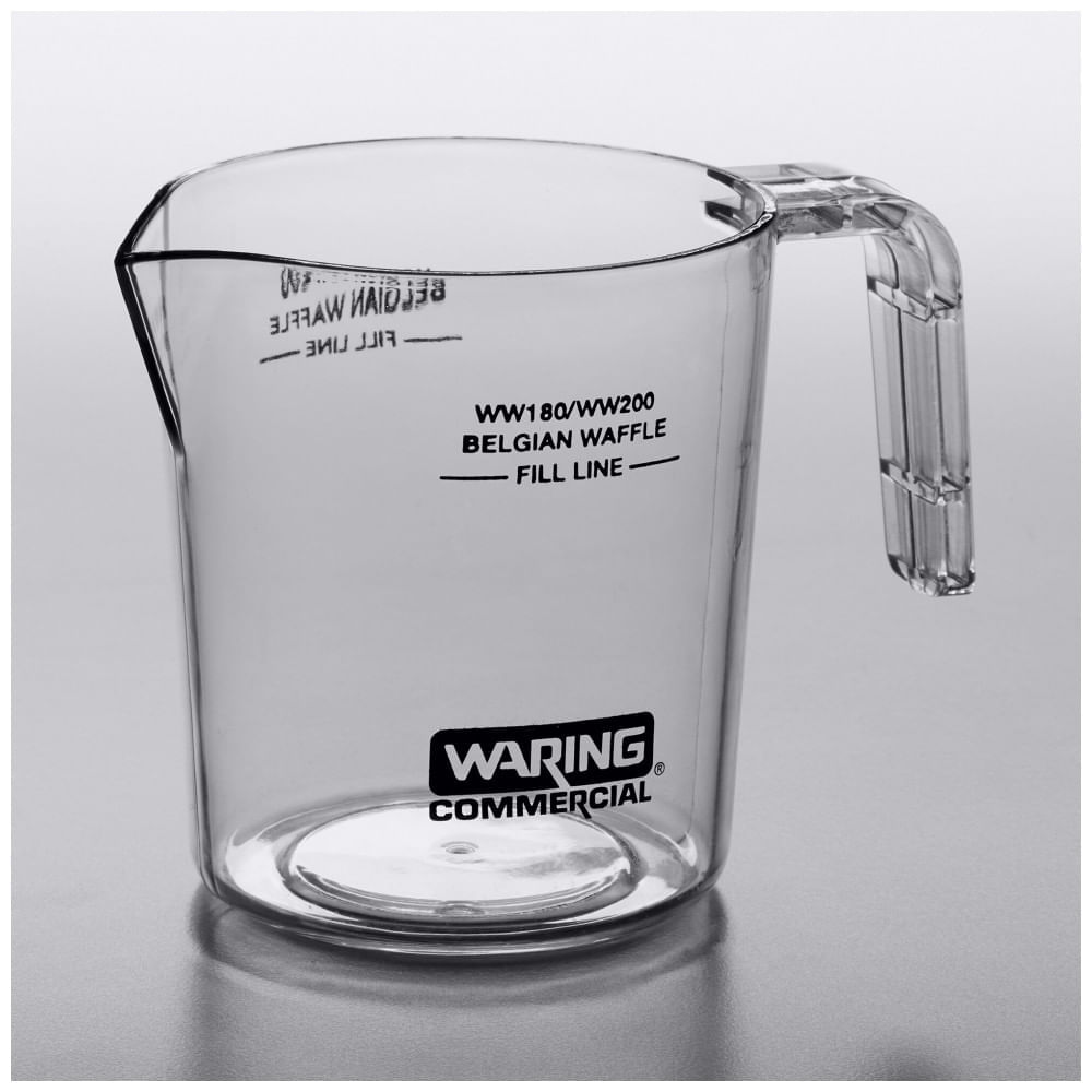 Atenção: Todos os produtos elétricos são 110V e necessitam de adaptador para a tomada no formato Brasileiro. O copo dosador Waring 032364 para massa de waffle facilita medição e porcionamento preciso em waffle irons comerciais. Projetado para cozinhas profissionais, possui linha de preenchimento marcada que garante volume consistente por waffle, reduzindo desperdício e uniformizando espessura da massa na grelha de cozimento. Derrame centralizado sobre o centro da superfície aquece uniformemente. Fabricado em plástico alimentar resistente ao calor até 100°C, suporta contato breve com placas quentes durante operação. Design ergonômico com bico direcionador minimiza respingos. Compatível com waffle makers Waring e equipamentos similares. Funcionalidades Linha graduada interna orienta dosagem exata; capacidade otimizada para 1 waffle padrão belga. Indicado para serviço contínuo de alta rotatividade. Cuidados Lave em lava-louças ou manualmente após cada uso. Evite exposição prolongada a temperaturas >100°C. Armazene vazio em local seco. Modelos compatíveis: Waring WW200 Waring WW180X Waring WW250B Waring WW250 Ficha Técnica Dimensões do produto: Capacidade 180 ml; altura 12 cm x diâmetro 8 cm. Peso com embalagem: 1 kg Materiais: Plástico alimentar resistente ao calor. Temperatura máxima: 100°C. Faixa etária: Uso profissional, 18+ anos. Conteúdo da caixa: 1 copo dosador 032364. Manual do usuário: Em inglês.
