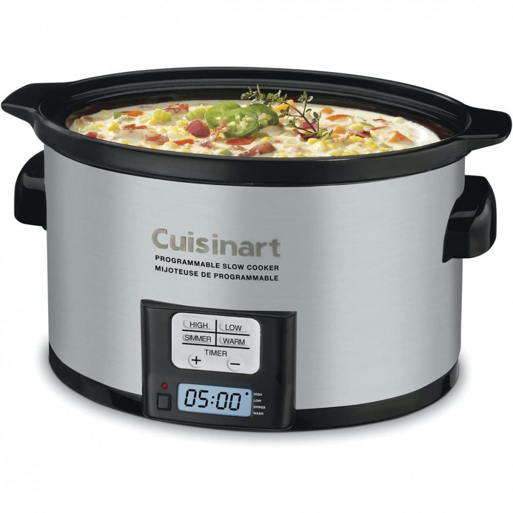 SEM IMPOSTO DE IMPORTACAO E FRETE GRATIS PRAZO DE ENTREGA 20 DIAS UTEIS O preco ja inclui todos os custos nao sera cobrado nenhum valor extra para o recebimento do produto O preco inclui imposto de Importacao ICMS Frete Nacional Frete Internacional Servicos Alfandegarios e a intermediacao do cambio para pagamento no exterior Atencao Todos os produtos eletricos sao 110V e necessitam de adaptador para a tomada no formato Brasileiro Este fogao eletrico lento possui um design contemporaneo com uma elegante caixa de aco inoxidavel escovadoVendido individualmenteCapacidade 3 12 E o Fogao Lento Programavel Cuisinart de 35 litros aperfeicoao usando um preciso e conveniente timer de contagem regressiva de 24 horas por LCD e quatro modos de cozimento incluindo uma funcao Quente quando o tempo passa E facil fazer comidas classicas ou experimentar novos criacoes gourmettudo em uma panela de ceramica de tamanho conveniente que cabe confortavelmente em qualquer bancada