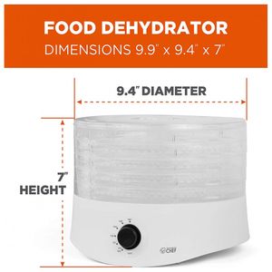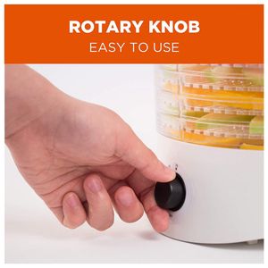 5 CAMADAS DE BANDEJAS Considerado um dos melhores desidratadores para alimentos e carne seca, este fenomenal utensílio de cozinha é composto por 5 bandejas circulares, suficientes para acomodar a maioria dos alimentos e criar uma secagem uniforme.