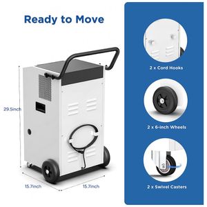 Totalmente automatizado para economia de energia e longa vida útil: Este desumidificador eficiente em termos energéticos possui um temporizador de ligar, desligar automático de 24 horas, descongelamento automático e um umidostato programável que mantém o nível de umidade desejado com precisão de 3. Isso não apenas economiza energia, mas também prolonga a vida útil do aparelho.