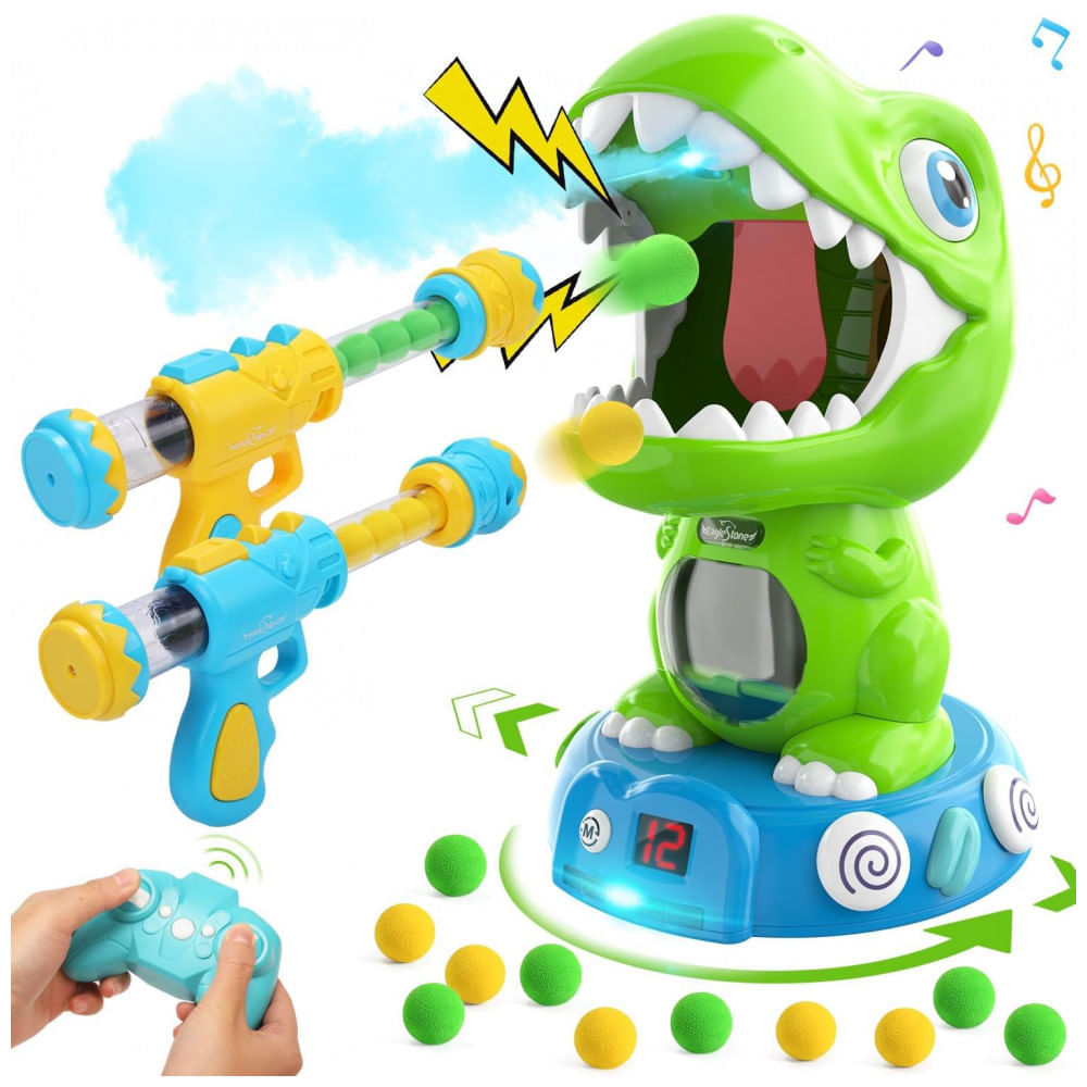 Atenção: Todos os produtos elétricos são 110V e necessitam de adaptador para a tomada no formato Brasileiro. Descubra a emoção do jogo dinâmico com o Dinossauro de Tiro Controlado por Controle Remoto da EagleStone, criado especialmente para crianças a partir de 6 anos! Este brinquedo oferece três modos de jogo únicos que garantem diversão e desafio: no Modo Estático, é mais fácil mirar e acertar o alvo, perfeito para iniciantes; no Modo Controle Remoto, o dinossauro responde a comandos para avançar, recuar e virar, proporcionando uma experiência realista e interativa; e no Modo Demonstração Automática, o dinossauro evita obstáculos automaticamente, tornando cada disparo uma aventura emocionante. O sistema eletrônico de pontuação acompanha cada acerto na língua do dinossauro, exibindo a pontuação em uma tela LED e ativando efeitos especiais de fumaça e luz para celebrar cada sucesso. Após cinco acertos, o dinossauro vibra com uma comemoração que incentiva a autoconfiança da criança. O conjunto completo inclui o alvo dinossauro automático, controle remoto 2.4GHz para controle suave e responsivo, bateria recarregável de alta duração, duas armas de ação por bomba com 48 munições de EVA macias, óculos de proteção e uma pipeta. Ideal para crianças de 5 a 8 anos, este brinquedo é perfeito para festas, aniversários, Natal e outras ocasiões, promovendo a coordenação motora e a habilidade de mira. Divirta-se tanto em ambientes internos quanto externos, estimulando a concentração e o aprendizado através do jogo. Com bateria recarregável de 500mAh, a diversão dura horas, proporcionando momentos inesquecíveis para meninos e meninas. Especificações: Dimensões do Produto: 25,4 x 12,7 x 25,4 cm, Peso do Item: 0,94 kg, Número do Modelo: 8808-11B, Idade Recomendada pelo Fabricante: 6 anos ou mais, Baterias: 1 bateria de íon de lítio necessária, Fabricante: EagleStone