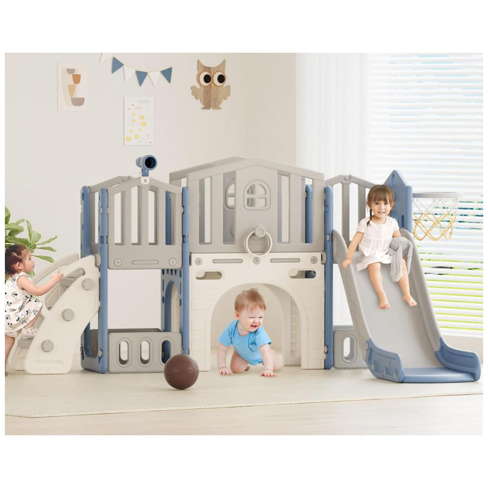 Atenção: Todos os produtos elétricos são 110V e necessitam de adaptador para a tomada no formato Brasileiro. Dica de Segurança: O escorregador exige apertar os parafusos plásticos durante a montagem e verificar se estão soltos quando em uso. Playground 9 em 1 para Bebês: O escorregador possui 9 áreas de atividades, incluindo escadas, escorregador, 2 espaços para armazenamento, jogo de argolas, área de basquete, corredor, painel de jogos, telescópio e área de escalada na parte inferior. Escorregador Resistente e Seguro: Mantenha seu bebê ativo com este escorregador de plástico. Ele vem com uma escada de degraus antiderrapantes e corrimãos robustos, proporcionando uma experiência divertida e segura para bebês e crianças pequenas. Material Seguro e Ecológico: Feito de HDPE durável e de alta qualidade, sem odor. O escorregador para crianças tem uma estrutura espessa e robusta com superfície bem polida, sem cantos ou bordas afiadas. Playground para Uso Interno e Externo: Este escorregador é leve e fácil de mover, adequado para uso interno ou externo, com estrutura forte e durável. Tamanho do Conjunto de Escorregador e Escalada: 147 x 216 x 102 cm, peso máximo suportado: 86 kg, leve e fácil de montar, sem necessidade de ferramentas. Especificações do produto: Nome da Marca: XJD Faixa Etária: Bebê Peso Máximo Recomendado: 86 kg Montagem Necessária: Sim Dimensões do Item (C x L x A): 187 cm (C) x 147 cm (L) x 94 cm (A) Material: Polietileno de Alta Densidade Cor: Azul e Cinza Peso:28 kg