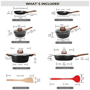Produto importado dos Estados Unidos o prazo de entrega e de ate 25 dias uteis As importacoes sao oficiais atraves do Regime de Tributacao Simplificada da Receita Federal O preco inclui imposto de Importacao ICMS Frete Nacional Frete Internacional Servicos Alfandegarios e a intermediacao de cambio para pagamento no exterior O preco ja inclui todos os custos nao sera cobrado nenhum valor extra para o recebimento do produto ATENCAO Todos os produtos eletricos sao 110V e necessitam de adaptador para a tomada no formato brasileiro Antiaderente ecologicamente correto e facil de limpar os conjuntos de panelas de granito ESLITE LIFE interior e exterior sao revestidos por revestimento de granito antiaderente de alto desempenho facil de cozinhar e limpar Cozinhar com pouco oleo para uma dieta saudavel sem fumaca verde e saudavel otimo efeito antiaderente ideal para uso em fogo baixo a medio Corpo robusto e duravel construido em aluminio fundido resistente combinado com a vantagem de ferro fundido e panelas rebitadas tradicionais resistente a quebra e nao deforma conduz calor de forma rapida e uniforme o fundo compativel com inducao espessa fornece uma distribuicao de calor estavel durante cozinhar aquecer rapidamente economiza tempo e energia Usado com Multiplas Fontes de Calor Design com base magnetizada perfeita que permite uma rapida transferencia de calor e uso prolongado e perfeitamente adequado para fogoes a gas ceramica eletrico halogenio ou inducao uma solucao de substituicao ideal para o seu envelhecimento desgastado ou equipamento de cozinha com defeito Uma frigideira antiaderente perfeita e o melhor parceiro de cozinha para voce Maneira mais saudavel de cozinhar ESLITE LIFE 12 Pcs Pans and Pots Set Inclui 1 Panela de 15L e 25L com tampa 2 Frigideira de 20 cm e 27 cm 3 Panela de estoque de 5L com tampa 4 panela refogada de 27 cm com tampa 5 espatula de madeira e concha de silicone menos oleo necessario e menos fumaca liberada fique longe de uma cozinha enfumacada aqui nos fornecemos uma maneira mais saudavel de cozinhar diariamente O cabo de baquelite resistente ao calor e adequado para agarrar e manter o resfriamento durante o cozimento