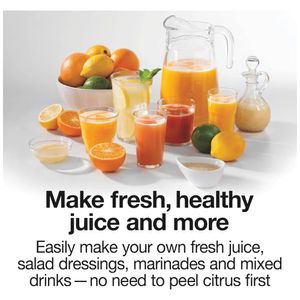 Atenção: Todos os produtos elétricos são 110V e necessitam de adaptador para a tomada no formato Brasileiro. Prepare sucos frescos e saudáveis com laranjas, limões, limas, toranjas e outros cítricos. Este espremedor elétrico versátil é perfeito para temperos de saladas, marinadas e ideal sempre que precisar de um espremedor de laranja ou limão.
