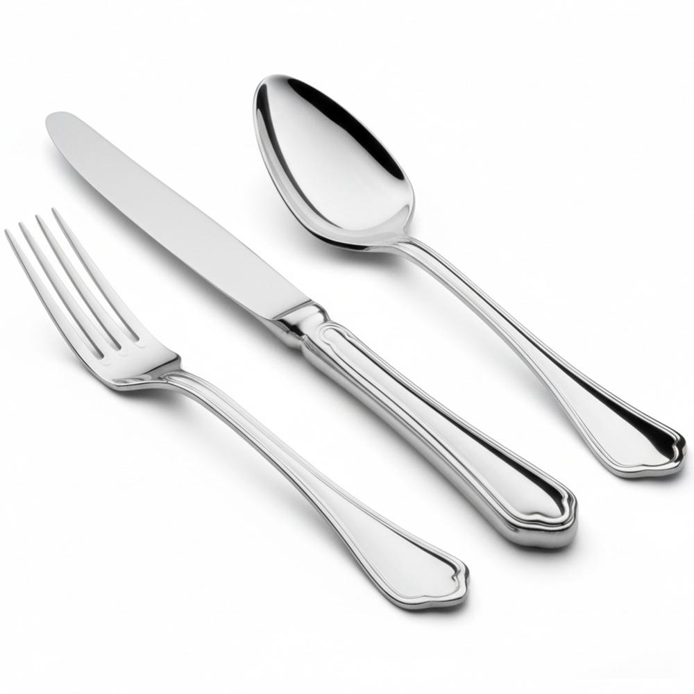 A estrutura em aço inoxidável garante durabilidade excepcional e resistência ao uso constante, preservando o brilho original por muito mais tempo. O design Florence equilibra linhas clássicas com um toque moderno, resultando em peças ergonômicas que oferecem o peso ideal e equilíbrio tátil superior para uma experiência gastronômica completa.