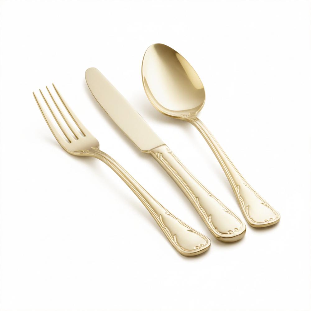 Eleve a sofisticação das suas recepções com uma coleção de talheres que une a força do aço à delicadeza do acabamento champanhe gold. Desenhado para quem procura uma estética contemporânea e exclusiva, capaz de transformar qualquer momento à mesa em uma experiência sensorial luxuosa e memorável