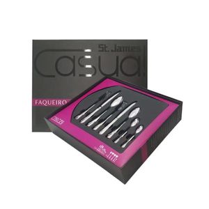 O Faqueiro St. James Casual 101 Peças 4 Seasons Inox é uma combinação de delicadeza, resistência e durabilidade. É produzido em aço de alta qualidade e possui acabamento impecável, o que lhe proporciona excelente apresentação. As facas possuem lâminas temperadas, que mantêm o corte por mais tempo e não causam riscos nas superfícies dos pratos conservando-os sempre bonitos.