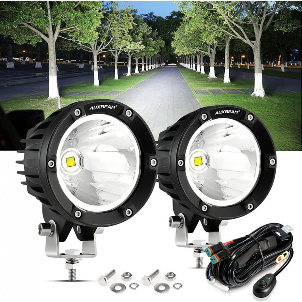 Atualização inteligente As luzes de direção redondas de 10 centimetros usam a tecnologia EMC para obter um tempo de resposta liga, desliga mais rápido, isolam completamente a onda eletromagnética da interferência do áudio do carro e do computador de direção, acompanham para uma direção segura. Compatível com qualquer tipo de DC 9 32V veículos off road, carros particulares, ATV, UTV, SUV, caminhonete, motocicleta, van, trator, reboque, barco, marítimo, externo e interno, equipamentos de construção, iluminação industrial, agricultura, serviço pesado, etc.