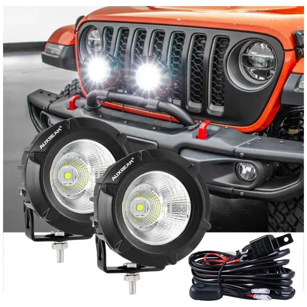 Padrão de feixe combinado e espalhado. A luz de condução redonda do Auxbeam de 50W apresenta um padrão de feixe combinado, com refletores Spot Spread perfeitamente angulados, para máxima distância à frente e iluminação periférica aprimorada ao longo das bordas da estrada