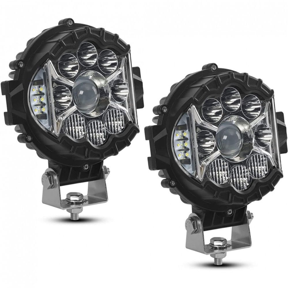 Atenção: Todos os produtos elétricos são 110V e necessitam de adaptador para a tomada no formato Brasileiro. Características A luz de trabalho LED de 7 polegadas e 80W apresenta chips de LED de alta intensidade que emitem luz branca concentrada de 5.100LM para um melhor efeito de iluminação. Aumente melhor o brilho, expanda o efeito visual e forneça uma garantia de segurança para sua direção em noites escuras e tempo chuvoso e nebuloso.
